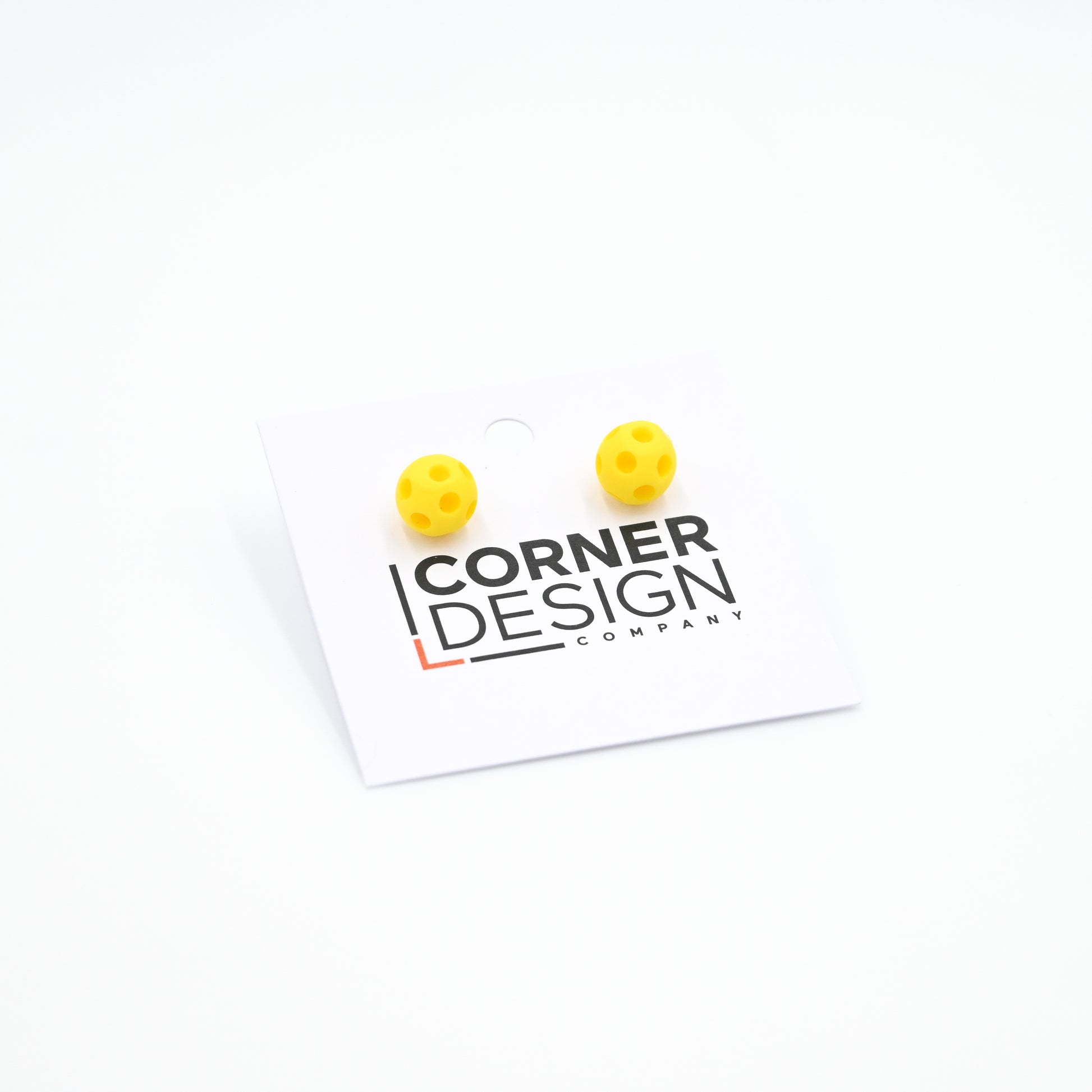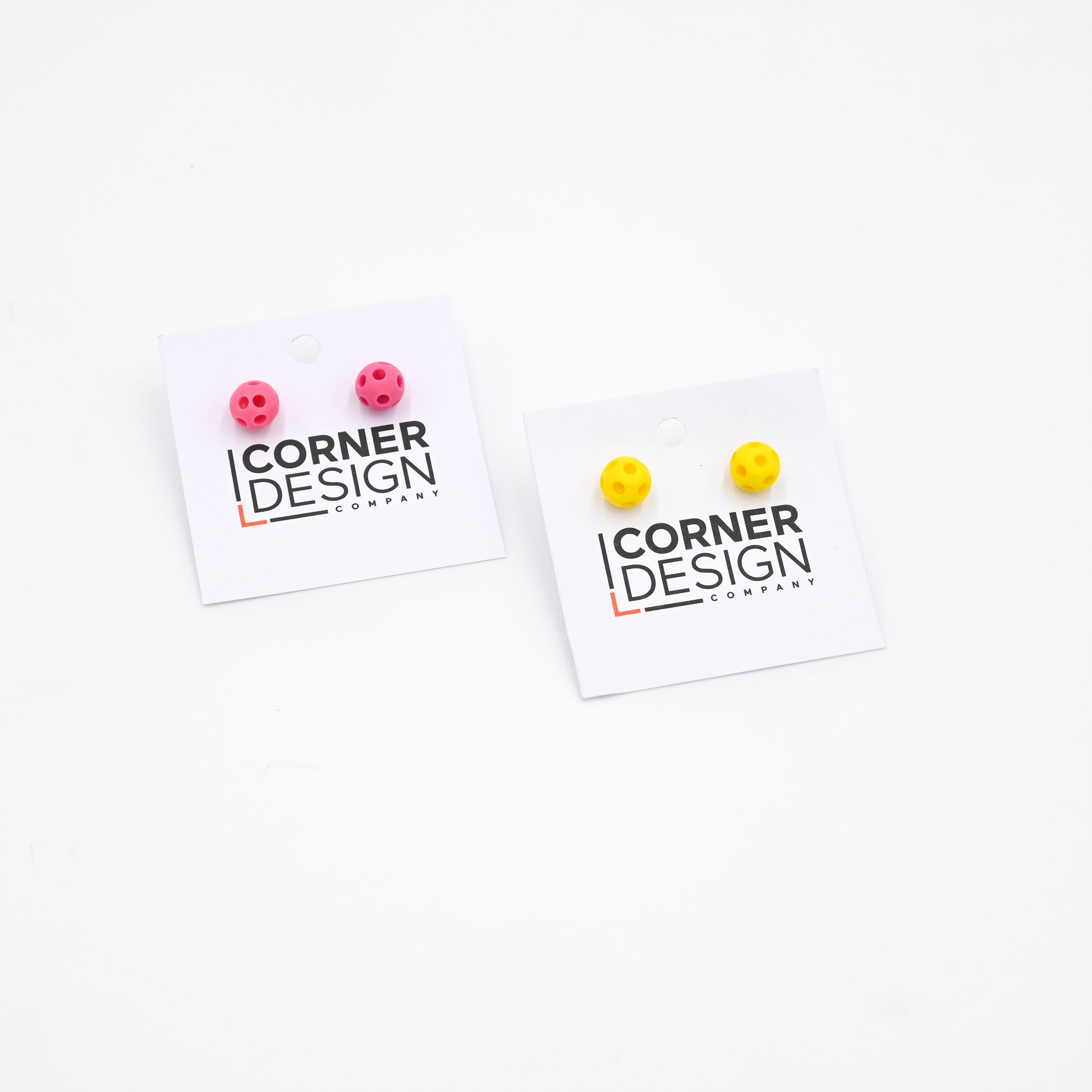 These pickleball stud earrings are comfortable, lightweight, and nickel free. These are mini versions of pickleballs with a diameter of 1 cm (.39 in.).